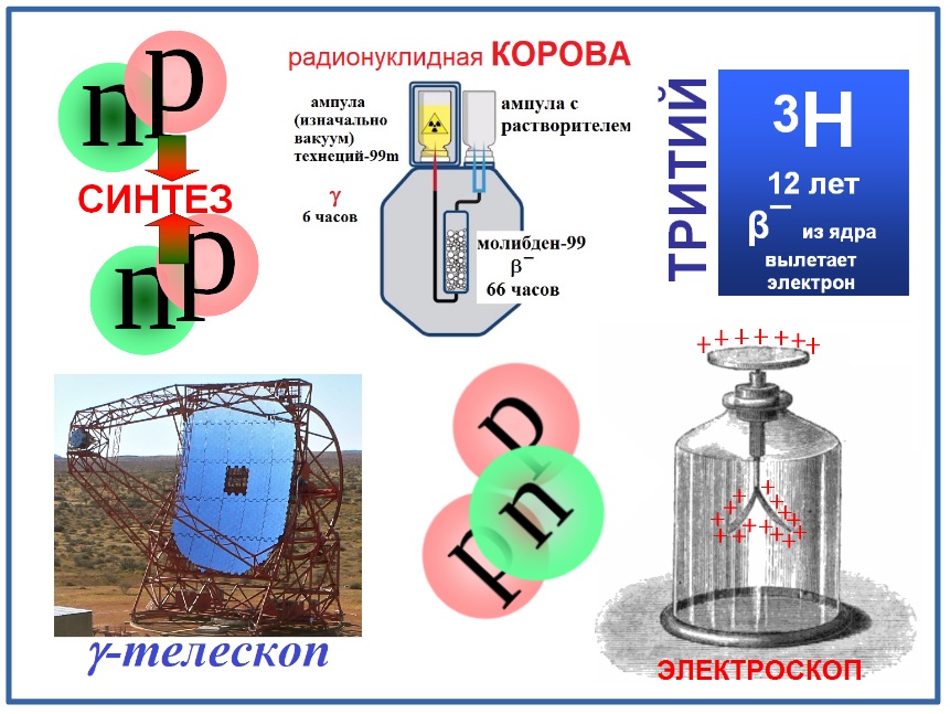 Ядерный дубль: космические лучи уровень 2 На Землю падают галактические и солнечные космические лучи. Впервые космические лучи обнаружили при полетах на воздушном шаре с помощью электрометра (по сути электроскопа с делениями). В космических лучах с помощью камеры Вильсона были обнаружены мюоны ("тяжелые электроны", почти в 200 раз тяжелее электрона). Регистрировать мюоны и электроны, образующиеся от взаимодействия космических лучей в верхних слоях атмосферы, можно счетчиком Гейгера. В атмосфере под действием космических лучей рождаются ядра углерода-14 и трития (водорода-3). карточки